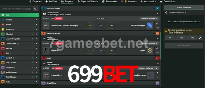 O 699Bet oferece uma grande seleção de opções de apostas em e-sports com probabilidades competitivas